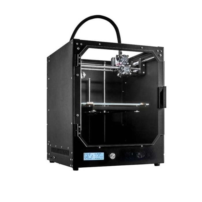 Корпус принтера имеет закрытую конструкцию и изготовлен из металла. Прозрачная акриловая вставка помогает следить за ходом печати. Возможность поддержания высокой температуры в области печати позволяет работать с разными видами пластика и добиваться качественного результата.